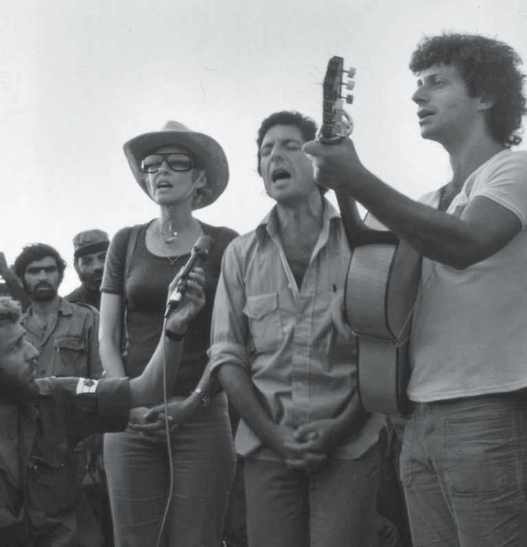 Di quel frammento di vita di Cohen nel 1973 sono rimaste poche tracce. Qualche fotografia, rari articoli apparsi sui quotidiani israeliani dell’epoca, i ricordi dei soldati scampati alla guerra e dei cantanti che accompagnarono Leonard in quel giro di concerti, ma soprattutto un taccuino redatto sull’isola di Idra una volta rientrato da Israele a fine conflitto, e che fin qui era rimasto inedito. Friedman nel libro ne riporta degli ampi stralci. Troviamo ad esempio menzione dell’incontro con il futuro Primo Ministro Ariel Sharon, incontro di cui si è tramandata anche una surreale testimonianza fotografica: Leonard Cohen intento a cantare e, alla sua destra, fra i soldati, la figura dell’allora generale. Nel taccuino Leonard annota: