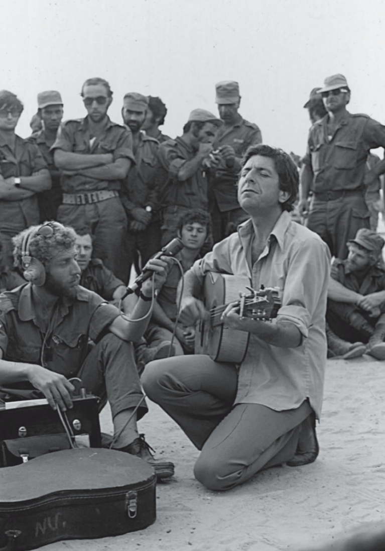 È la guerra a chiamare Leonard Cohen o dobbiamo piuttosto credere che si aggrappi alla guerra per sfuggire all’apatia che lo sta soffocando? Forse entrambe le cose. In fretta e furia Leonard s’imbarca sul primo aereo per Tel Aviv. Con quali intenzioni? Non è del tutto chiaro. Di sicuro sappiamo che non porta con sé la chitarra. A chi gli chiede lumi dice di voler andare a lavorare in un kibbutz come volontario, così da permettere ai ragazzi israeliani di andare a combattere. Giunto a destinazione viene invitato a seguire i cantanti israeliani diretti al fronte per intrattenere le truppe. Cohen tentenna: “le mie canzoni sono tristi, come Bird on a wire, riuscirei solo a deprimerli”. Alla fine però si lascia convincere. Si fa prestare una chitarra da uno dei musicisti e parte alla volta del deserto del Sinai.