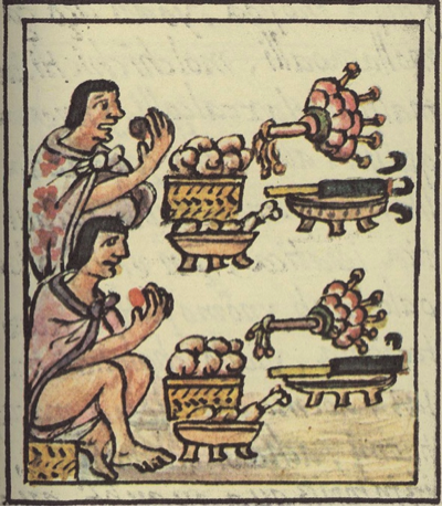 Aztec men at a banquet. Florentine Codex, late 16th century.