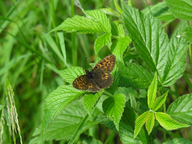 La identificammo nella rara Clossiana thore che vive in oriente, dalla Cina all'Europa orientale, e che qui in Val d'Ossola raggiunge il suo sito di volo più occidentale. Era una specie rara certamente e che nessuno sospettava di reperire oggi. Con il suo colore di fondo aranciato e macchie nere soffuse ovunque, è una sorta di copia sbiadita di altre clossiane più comuni e dai disegni più netti.