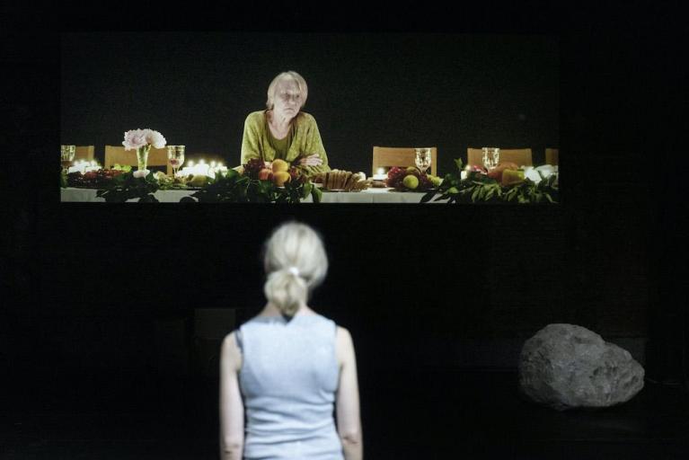 Sullo sfondo, con la stessa ovvietà con cui ci si aspettava la porta di un palazzo nel teatro greco, ecco comparire un enorme schermo. Una telecamera – statene certi – apparirà davanti ai nostri occhi (non c’è più bisogno di nasconderla), riprenderà il volto di un performer e lo proietterà, ingrandito, sulla scena. Sbirceremo le sue esitazioni, i singulti, le vibrazioni impercettibili.