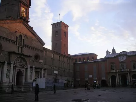 Il nome Emilia, di cui si fregia oggi come un vanto e persino un marchio di qualità, cadde in disuso a lungo; lo riesumarono solo gli eruditi rinascimentali, ma fu cosa breve e inefficace. Quello dell’inesistenza è un tratto impresso anche nella storia leggendaria della città di Reggio, che trae il suo nome da Marco Emilio Lepido, il quale la fondò come stazione intermedia tra Modena e Parma. Reggio, segnata dal cardo e dal decumano, dall’incrocio di due linee rette, nasce come un accampamento romano, da un gesto militare in tempo di pace. Secondo una leggenda che si tramanda a voce, la città fu salvata una prima volta da San Prospero, già patrono del borgo, che fece calare una nebbia durante il passaggio delle orde ungare. Non la videro e transitarono oltre. Questo portò alla costruzione nel secolo X di una chiesa patronale, che si eleva giusto dietro le spalle del Duomo, duplicandone la piazza mediante un’altra più piccola, la più bella di Reggio, coronata sui tre lati dai portici e chiusa da un fondale teatrale – la chiesa stessa -, inequivocabilmente storto.