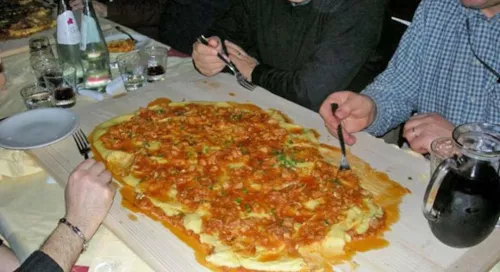 È stato ed è un piatto delle grandi famiglie allargate della società contadina dove tre generazioni erano una fianco all’altra ma anche piatto per combriccole gaudenti, perché no, pietanza per amanti dove la distinzione tra sé e l’altro letteralmente sfuma nel cibo condiviso su quell’unica superficie. Forse, solo il reciproco imboccarsi, a labbra dischiuse, può dare alla condivisione del cibo la stessa preliminare intimità...