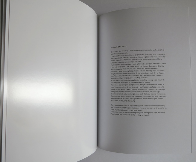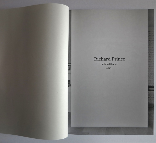 Richard Prince untitled (band) 2013 / 2014 è un libro d’arista che documenta la seconda mostra personale dell’artista newyorkese in Italia, organizzata da Pasquale Leccese, amico di Prince e noto gallerista di Le case d’arte. Questo bellissimo progetto editoriale è interamente realizzato e prodotto dalla storica casa editrice milanese di libri d’artista A+M bookstore, fondata più di vent’anni fa da Amedeo Martegani, bibliofilo e artista italiano. Il libro, prodotto in 800 copie con rilegatura bodoniana e composto da sole 36 pagine, documenta e raccoglie, quasi fosse una cartella d’artista, un lavoro di Prince realizzato nel settembre del 2013. Oltre a presentare le fotografie dell’installazione, scattate in bianco e nero dal fotografo Roberto Marossi con un banco ottico, il volume include anche un’importante saggio scritto dall’artista nei primi anni Ottanta, Decorating My Walls.
