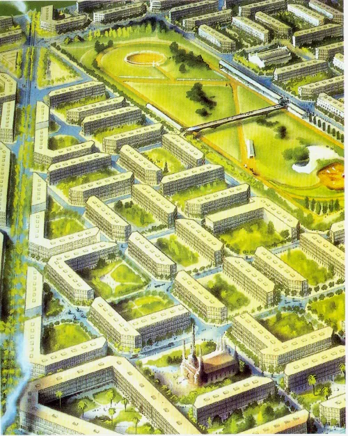 Il mondo professionale degli architetti e degli ingegneri milanesi tra le due guerre non fece una piega. Solo Giovanni Muzio su «L’Ambrosiano» del 18 gennaio 1931 ebbe un sussulto di resipiscenza, sostenendo che la città nuova dovesse sorgere «a lato e non sopra la città vecchia» (cit. da G. Tonon, Architetti e progetto urbano a Milano negli anni del fascismo, in «Territorio», n. 105, 2003, p. 155). Ma anche Muzio non poteva tirarsi fuori, essendo tra coloro che avevano dato inizio alle danze quando, nel concorso per il piano regolatore del 1926-27, con i sodali del Club degli Urbanisti (Alberto Alpago Novello, Tommaso Buzzi, Ottavio Cabiati, Giuseppe de Finetti, Emilio Lancia, Michele Marelli, Gio Ponti e Ferdinando Reggiori), aveva proposto la “Racchetta”, la strada che, facendosi largo nel fitto tessuto medioevale abitato per lo più da ceti popolari, avrebbe dovuto collegare direttamente piazza S. Babila con il Castello Sforzesco, al fine di «decentrare il traffico» automobilistico da piazza del Duomo. Da questa motivazione risibile sono nati gli spazi infelici che rispondono ai nomi di corso Europa, via Larga e via Albricci. Per fortuna la “Racchetta” si è fermata davanti al seicentesco palazzo delle ex Scuole Arcimbolde (non senza avere prima ridotto a rudere la chiesa medioevale di S. Giovanni in Conca).