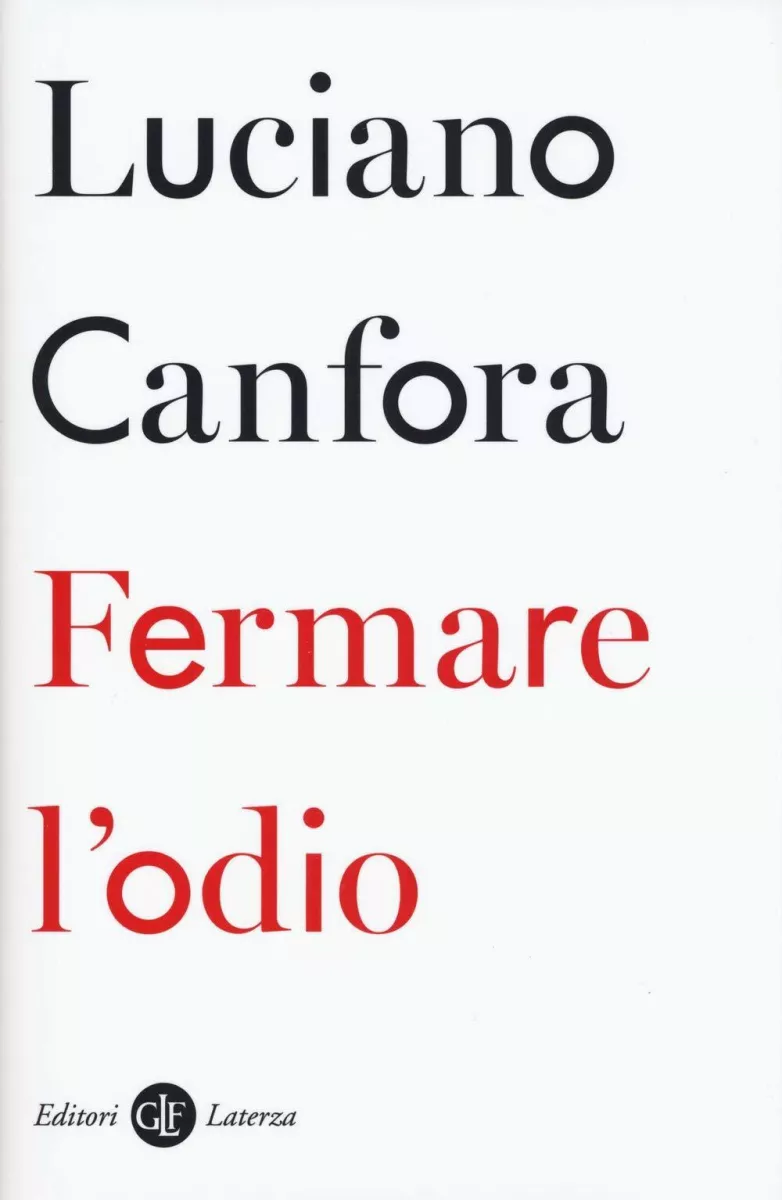 Nel suo Fermare l'odio proprio Canfora nell'emergenza dell'attualità sottolinea il ruolo dell'odio razziale e del suo linguaggio in relazione al tema delle migrazioni internazionali e all'interno del lento scivolamento verso nuove e diverse, presenti e possibili, forme di fascismo; per converso propone di riconfigurare il significato culturale, storico ed economico dei fenomeni migratori nella storia fino a farne l'avanguardia per la cultura e la società del futuro.