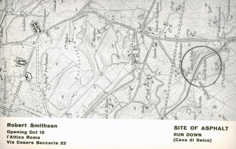 Robert Smithson, Asphalt rundown, Archivio lattico, Fabrio Sargentini.
