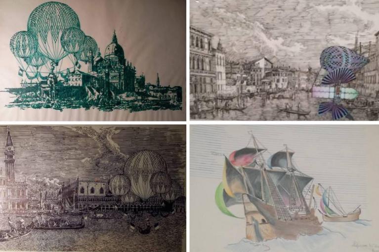 Roberto Orefice, alcuni lavori degli allievi del biennio propedeutico all’ISA di Monza dedicati ai temi congiunti del volo e di Venezia.