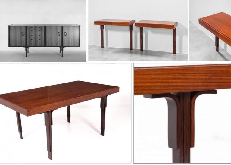 Mario Bellini, Mario Cristiani Orefici e Roberto Orefice per il Centro Design de La Rinascente, arredi della serie Ammiraglia in palissandro, 1961.