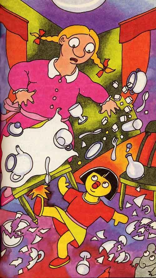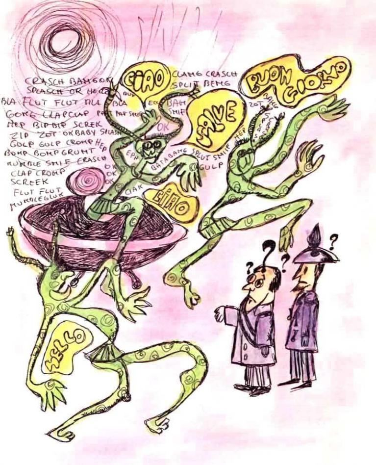 Appare incredibile che per Rodari tutto questo si potesse ridurre a una questione di “Crunch!” e di “Scrash!”; e ancor più sgomenta il finale distopico del racconto, con il governo che dichiara il “fumettese” lingua di Stato, abolisce la libertà di parola e costringe quei pochi che vogliono continuare a parlare con le parole invece che con i fumetti a bisbigliare nelle cantine: “Pareva tanto comodo e bello che le uova, rompendosi sull'orlo del tegamino, producessero soltanto una bollicina con su scritto Splif! o Scrash!, secondo che fossero di giornata o conservate. Si è poi vista la fregatura”.