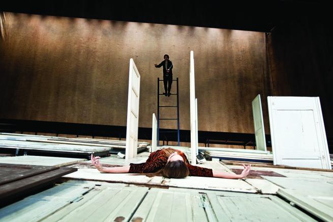 La Celestina di Ronconi, in scena al Piccolo Teatro Strehler fino allo scorso 1° marzo, è già stata recensita su queste pagine da Maddalena Giovannelli. Al suo equilibrato, competente commento rinvio per una valutazione complessiva dello spettacolo; mi limito a sottoscrivere l’elogio al décor di Marco Rossi, mirabile per funzionalità scenica e pregnanza simbolica. Gli interpreti si muovono su una superficie obliqua, che si presenta come una sghemba distesa di vecchie porte, differenti per forme e dimensioni. Di qui un prevalere dell’asse verticale (alto/ basso) rispetto alle coordinate orizzontali, conforme all’oscura visceralità del dramma: non è lecito attendersi incontri nuovi, il mondo dove ci si muove è logoro e circoscritto, perfino sottilmente claustrofobico (la compatta parete sullo sfondo potrebbe essere quella d’un pozzo); il decorso degli eventi dipende dall’eruzione di impulsi incontrollati ai quali nessuno sembra sfuggire. E la tragica fine risulta più che mai ineluttabile: la giovane Melibea non si potrebbe uccidere se non buttandosi giù da una torre, cioè adeguandosi a una bassura dove ogni sentimento si annichila.