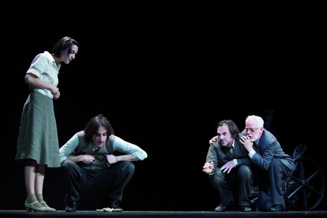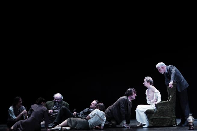 Ciò premesso – e ribadito che l’intelligenza teatrale di Ronconi rimane fuori discussione – mi pare ci sia anche qui un aspetto censurabile. Mi riferisco all’uso dei microfoni. Si dirà: nemmeno questa è l’esclusiva di uno spettacolo, né una particolarità del Piccolo di Ronconi. Capita sempre più spesso, e ovunque, di vedere in scena attori equipaggiati con microfoni ad archetto, aggeggi minuscoli, discreti, color carne, quasi invisibili. Ma il problema non è dissimulare alla vista il dispositivo di amplificazione, cosa tutto sommato banale. Il problema è l’effetto acustico. La voce, amplificata, non arriva più al pubblico nello stesso modo, perché la sorgente del suono muta. Quello che accade, in buona sostanza, è che la voce viene scissa dal corpo dell’attore. E poiché lo spettatore è seduto in poltrona, fermo, può avere la sensazione – inquietante, oltre che sgradevole – di assistere a una proiezione in 3D (sia pure di ultimissima generazione).