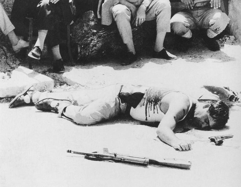 Il film si apre con la morte di Giuliano: un grandangolo inquadra dall’alto un cortile ove giace, disteso sul torace, il corpo del giovane uomo, circondato dagli ufficiali di polizia; il funzionario di stato annota meticolosamente la posizione del cadavere, i suoi indumenti, una canottiera bianca e un pantalone color cachi, mentre la macchina da presa con numerosi primi piani indugia sulla salma. La scena riproduce fedelmente la celebre immagine che fu riprodotta dalla stampa dell’epoca. Poco dopo accorrono fotografi e giornalisti, per scattare foto e prendere appunti, uno di loro esclama: “Tutta la maglietta è inzuppata di sangue, ma a terra quasi niente”. Costui personifica evidentemente Franco Grasso, uno dei primi a giungere sul luogo del delitto, un cronista indipendente che dirige la cronaca del giornale La Voce della Sicilia e che subito metterà in discussione l’attendibilità della versione ufficiale.