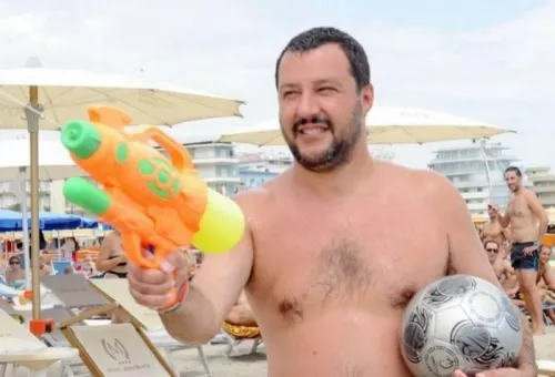 Se nella sfida lo sfidante metteva in scena il proprio simulacro, nella provocazione il provocatore è un simulacro per i propri. Il corpo nudo di Salvini non è per sé ma è lì, soprattutto, per conto del desiderio dei suoi (ipotetici) ispiratori: un desiderio di superamento del senso di pudore collettivo, desiderio di un corpo quotidiano, anonimo e invisibile, che vorrebbe esporsi così com’è, nella sua bruttezza (morale prima ancora che fisica) e nonostante ciò essere desiderabile e desiderato. Potente.