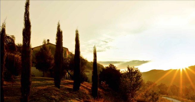 Lo sguardo si perde lungo le colline dalle forme dolci, il verde è ovunque, a perdita d’occhio. Quel verde prevale sull’azzurro del cielo, la terra sembra dominare sull’aria. C’è un’energia forte che viene dalla terra e isola questo luogo, con un confine netto con il mondo intorno. Non è solo un isolamento di comunicazione, è una lontananza che va oltre la mera lontananza geografica. L’isolamento mi piace e lo godo fin da subito, mi dico sottovoce “era quello che mi ci voleva”, ma qualche istante dopo mi rendo conto che non ero pronta, che avrei almeno dovuto fare una telefonata alla mia famiglia. Nonostante questi pensieri, mi distraggo velocemente, presa come sono a carpire quello che avviene intorno a me, i silenzi, gli stralci di dialoghi che provengono dai due spazi di prova, il lavorio dell’ufficio.
