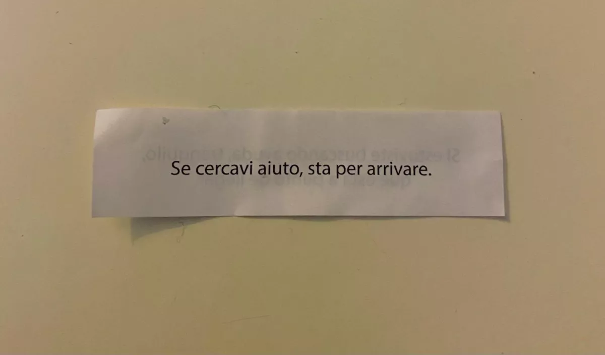 Ieri sera ero troppo stanca per cucinare e ho cenato al giapponese di fronte a casa. La signora, molto cinese in realtà, ha insistito un bel po’ per farmi prendere il menù da venti euro: «plendi tutto e non scegli. Mangi tutto! Tutto tutto!» Provo a spiegarle, gentilmente, che non ho nessuna intenzione di mangiare tutto il menù. Insiste. Penso: ma se è tutto il giorno che sproloquio di scelte, di quanto sia importante scegliere, e la responsabilità, e bla bla bla… e adesso – va bene che siamo a fine giornata, va bene che non mi reggo in piedi – ma proprio io devo gettare la spugna? «No grazie, scelgo una cosa sola», le dico. La signora mi guarda profondamente insoddisfatta. Comunque, mentre mangio, mi prende una strana malinconia: forse avrei dovuto accontentarla, penso, il suo menù a venti euro in fondo avrebbe reso più felici entrambe. Alla fine mi porta un cestino con i biscotti della fortuna. «Plendi uno!» Non ne ho voglia per niente, ma non me la sento di deluderla ancora, e allora scarto il biscotto proprio davanti a lei. Leggo, ad alta voce: «Se cercavi aiuto, sta per arrivare». Le sorrido.