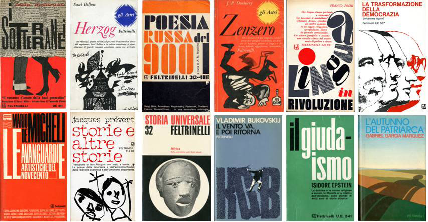 Alcune copertine di libri realizzate da Silvio Coppola per Feltrinelli tra il 1964 e il 1977.