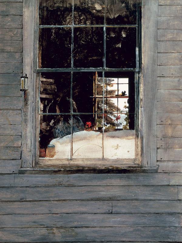 Geraniums, 1960 drybrush watercolor on paper, 30.75 x 15.5 in. Private Collection © 2016 Andrew Wyeth / Artists Rights Society (ARS), NY.