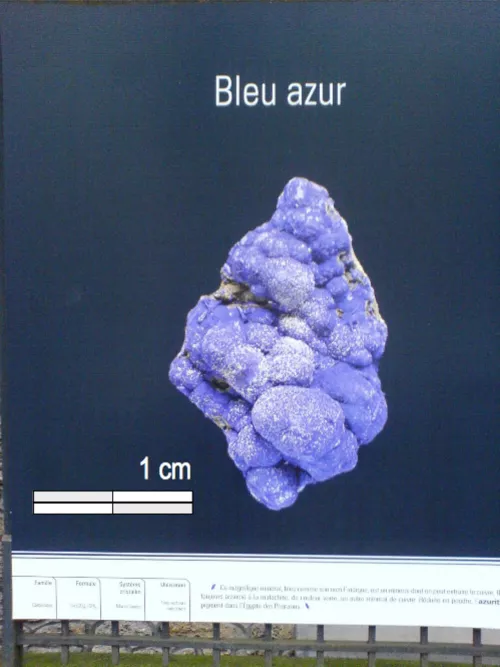 Sometimes we can just guess it – say, when we look at at picture of a hornet, or of an orchid. But what about the azurite crystal? Untutored viewers can take it to be as small as a grain or dust, or as big as a boulder (provided, of course, that we have an idea of the size of grains of dust and of boulders). Suppose that that was actually the size of a grain of dust. Knowing that, we would appreciate the delicacy of the texture; we would have a completely different appreciation if the crystal was the size of a large boulder. We do not know how big was the object depicted in the poster, but look at how your perception is modulated by the presence of a graduated ruler.