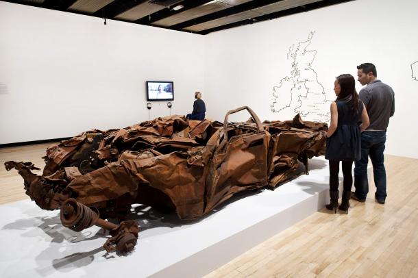 E ancora: fino al 13 maggio, alla Hayward Gallery di Londra è in corso la mid-career di Jeremy Deller, intitolata Joy in People (un po’ difficile da tradurre: Gioia per/nei confronti della gente). Che, anziché andare dall’esperienza dell’arte al mondo protetto della nostra cameretta, via computer e cavo nel ruolo dello specchio delle brame, percorre un cammino inverso dall’uno ai molti. Il percorso si apre con una ricostruzione meticolosa della camera da adolescente dell’artista, trasformata in spazio espositivo durante un provvido fine settimana di assenza dei genitori (Open bedroom, 1993), per proseguire con la documentazione di progetti sempre più corali, da The battle of Orgreave (2001, una ricostruzione storica degli scontri tra minatori e polizia dell’84/85, con centinaia di partecipanti locali) a It Is What It Is (2009), allestimento, all’interno del museo, di una piattaforma di discussione sulla guerra in Iraq, con conversazioni aperte tra testimoni diretti e membri del pubblico, uno a uno.