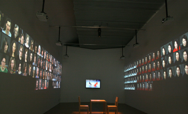 La sfilata dei partecipanti, fotografati da Mario Anelli e catalogati in una gallery online aggiornata costantemente, enfatizzava la presenza costante e invariata di Abramović, sempre identica a sé stessa, seduta nello stesso punto e vestita allo stesso modo, salvo mutare colore d’abito da bianco a rosso a nero. Ad alimentare la cronaca era invece il pubblico, con il suo narcisismo e l’alternanza cadenzata di facce famose o anonime. Un ottimo lavoro, anche perché, trasformando in speculari i ruoli di spettacolo e spettatore, Abramović l’aveva tagliato su misura per l’era della comunicazione ininterrotta, dove l’obbligo di essere presenti 24/7 si commisura a quello di essere performativi, altrettanto 24/7. Nella versione video esposta al PAC su due pareti affrontate, The Artist Is Present diventa un mosaico di visi intenti gli uni all’altro, quello di Abramović, in una versione a quadreria digitale del solito ‘libro delle facce’. La “faccizzazione” – per rubare un sostantivo indigesto a un’Amaca di Michele Serra del 2004 (uscita pochi mesi dopo la nascita ufficiale di Facebook, e che ne parlava a proposito della politica) – è vocabolario attuale.