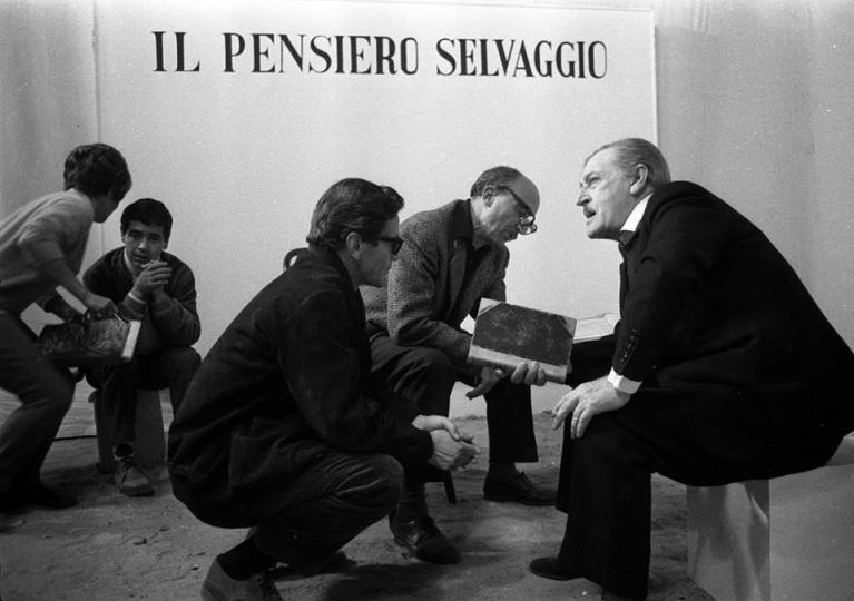 Sergio Citti, Pier Paolo Pasolini, Castellani e Totò sul set di “Uccellacci e uccellini”.