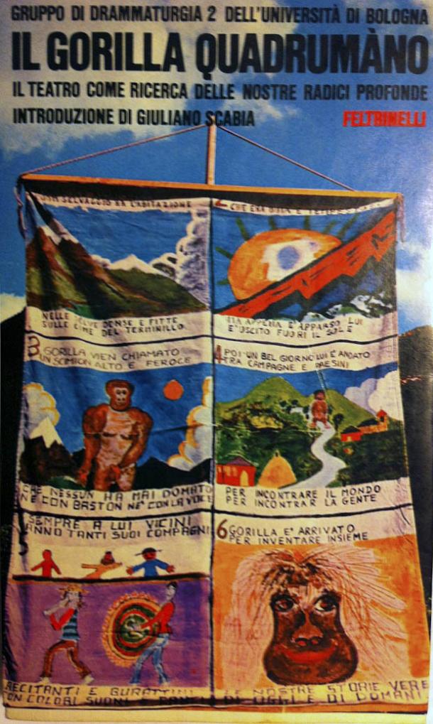 Giuliano Scabia: Nel ’72 facevo teatro vagante, un’azione chiamata Forse un drago nascerà. Nei paesini dell’Abruzzo fondavo città che duravano tre giorni, il terzo giorno la città si trasformava in un drago. In ogni posto portavo un teatrino che poi restava lì. Un giorno ero sul Monte Velino, in un paesino che si chiama Massa d’Albe, facevo il cavaliere e combattevo col drago quando arriva un messo comunale e dice: C’è uno che vorrebbe parlare con lei al telefono, da Bologna, un certo Squarzina. Ho detto va bene, finisco e vengo. Era Squarzina che mi invitava al DAMS. Ti piacerebbe venire a Bologna a insegnare?, mi fa; e io: non è la strada che ho scelto, studiare mi piace ma adesso sto facendo il drago. Lui insiste e gli dico: lunedì vengo a Bologna col furgone.