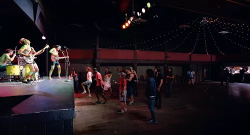 Eccola la pittura, sui corpi dei componenti della rock band che suona sul palcoscenico. I suonatori sono impegnati ed eccitati come se avessero di fronte una folla, ma in realtà la sala è vuota in maniera imbarazzante. Forse il suo fallimento è dovuto al fatto di aver preso la musica come modello, di aver preso la via dell’astrattismo e dell’abbandono della realtà.
