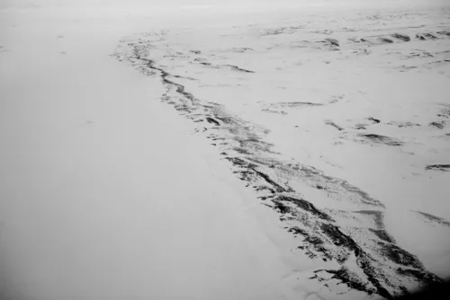 Una slitta corre sul ghiaccio, tracce di nero nel bianco; il bianco e nero qui non è stile fotografico, è paesaggio di interminabile inverno: neve bianca, cani bianchi, sagome umane in lontananza, casette nere, foche nere abbattute con un annoiato cinico scoppiare di fucile leggero.