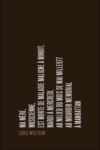 Negli anni successivi scrisse un libro ulteriore, Mia Madre Musicista è Morta di Malattia Maligna tra il Martedì e il Mercoledì della Metà di Maggio del Millenovecentosettantasette nel Moritorio del Memorial a Manhattan. In questa seconda opera, le vicende dell’agonia della madre si intrecciano al racconto della sua nuova passione, il gioco sui cavalli, e delle metodiche singolari attraverso cui selezionava cavalli, scuderie e fantini su cui puntare. Il francese del secondo libro è molto meno personale, conseguentemente più traducibile, venne pubblicato in italiano nel 1984 con un’intervista che riepiloga la vita di Wolfson a quella data. L’edizione italiana di SE è l’unica sottoscritta dall’autore, che aveva tribolato, almeno quanto con Pontalis per il primo libro, con l’editore lacaniano Navarin (molti scritti su Wolfson sono di lacaniani, del resto notoriamente attenti alla lettera e al suo destino).