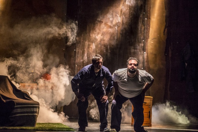 Brie la guida, ne esemplifica fisicamente le idee trasformandosi in corpo che si sbatte per terra nella violenza, diventando mentore e narratore, a volte burattinaio, a volte marionetta, accelerando l’emozione o la distanza che generi riflessione. I due sembrano guardare altrove, mentre ci parlano, mentre interpretano; i loro corpi, le voci, gli occhi evocano, trasportano qualcosa d’altro, di lontano, che sta prima di noi (l’odio, la forza, le guerre, i tradimenti), che sta dopo di noi (la speranza, la dolcezza, la voglia di comprendere, il bene invincibile), che a volte si fonde o si confonde, avanti, dietro, sotto, dentro noi. L’attore si fa medium, in equilibrio sui crepacci dell’altrove: per snidare, svelare, rivelare.