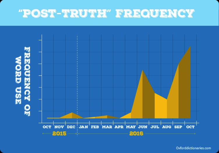 L’Oxford Dictionary avverte però che l’uso del termine nella nuova accezione  la verità diventa irrilevante, e non quindi “in seguito alla scoperta della verità” – è attestato solo a partire dal saggio di Tesich, e in particolar modo dopo la pubblicazione del libro The Post-truth Era di Ralph Keyes, nel 2004.