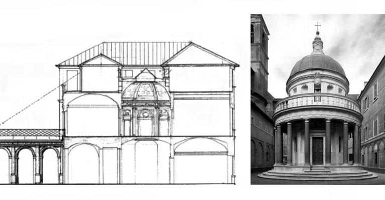 Donato Bramante, tempietto di San Pietro in Montorio a Roma / Palazzo Salvatico, sezione longitudinale nord-sud (archivio privato Asnago-Vender, Milano).