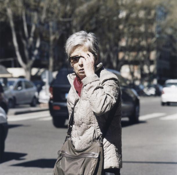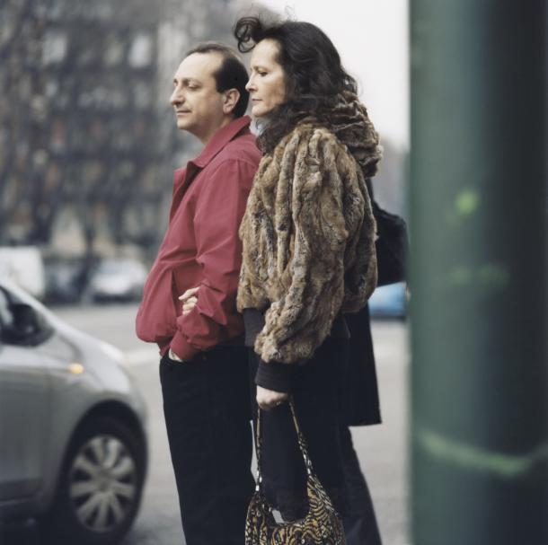 Le fotografie che vedete fanno parte di Surplace, ritratti di persone quando smettono di camminare lungo una strada di vetrine e negozi, e rimangono ferme, in attesa, nel punto in cui non ci sono vetrine e negozi. Il surplace, ricorda lo scrittore Giorgio Falco, “è una tecnica quasi scomparsa del ciclismo su pista, relegata a una forma di spettacolo e intrattenimento, che svilisce l’essenza del gesto originario, quando aveva ancora senso restare fermi, in equilibrio sulla bicicletta. Oggi c’è il cono di luce puntato sui due ciclisti in pista, proprio dove sono fermi, quasi immobili, in equilibrio sulle biciclette, accanto al nome luccicante dello sponsor, con il sottofondo di We will rock you o We are the champions.
