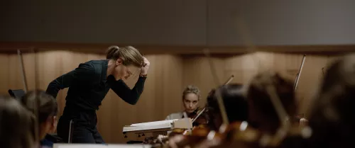 La vita lavorativa e sentimentale della protagonista è piena di donne – le stesse attraverso le quali, o a causa delle quali, il successo di Lydia, nel giro delle tre settimane coperte dalla traiettoria del film, andrà fuori controllo e esploderà. C’è l’assistente personale, Francesca (Noémie Merlant), dominata dal carisma di Lydia; poi c’è la compagna Sharon (Nina Hoss), primo violino, che soffre di attacchi depressivi; una ex collaboratrice e forse ex amante, Krista, allontanata da Lydia, che si suiciderà, dopo aver annunciato il suo gesto con l’invio di un romanzo – Challenge (Sfida) di Vita Sackville-West; e infine c’è Olga (Sophie Kauer), una giovane violoncellista russa molto vitale e talentuosa per la quale la direttrice prova subito un’attrazione, senza essere ricambiata. Nessuna di queste relazioni, tuttavia, è raccontata e mostrata con chiarezza, contribuendo a mantenere un clima di tensione bloccata, un senso di stranezza raggelata che funziona, anche in senso scenico, come atmosfera dominante dell’intero film.