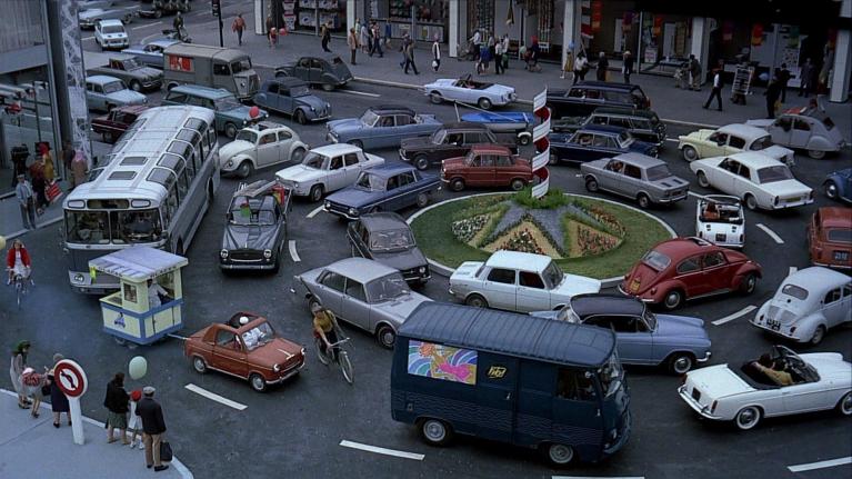 Non è un caso, forse, che il film esca soltanto sei mesi prima del maggio parigino. Lo slow burn della seconda parte del film, che ribalta il rigore geometrico e astratto della prima in un giocoso caos, per sfociare poi nel carosello finale delle automobili imbottigliate nel traffico, trova una sorta di pendant letterario nelle parole che Italo Calvino scrive nella primavera del 1968 dalla capitale francese: una città «senza macchine né metro, con code ai negozi... le macchine dei gollisti clacsonanti», in cui «non si fa altro che girare a piedi tra continui allarmi, in un clima di eccitazione straordinario». Sembra quasi l'illustrazione della tesi di Tati, secondo cui un vero film comico dovrebbe proseguire fuori dalla sala cinematografica e continuare nella vita quotidiana.