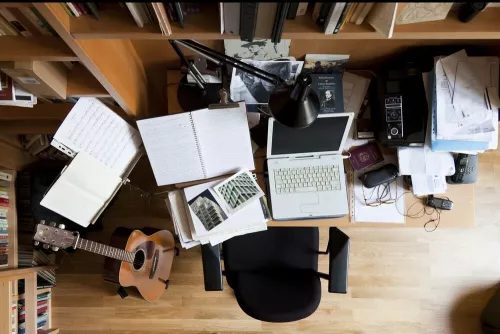 La scrivania. Come un sudario dovrebbe essere l’impronta dello scrittore assente, come un calco dovrebbe testimoniare il suo passaggio e, ça va sans dire, il suo valore, soprattutto quando, come in questo caso, è la scrivania di uno dei pochi che oggi possono giustificatamente aspirare al titolo di poeta. Ma non funziona così. La fotografia in questione non è un indizio: è un catalogo degli Oggetti.