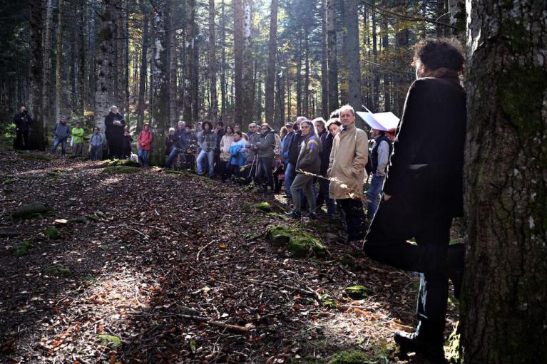 Ci dicono i due curatori, drammaturghi registi e attori della compagnia, Enrica Sangiovanni e Gianluca Guidotti, marito e moglie con tre figli, una splendida impresa a conduzione familiare, una famiglia d’arte che non deflette mai dal coniugare il teatro con una visione etica, ideale: “Il volume è stato pensato come un contenitore, una custodia per raccogliere le dispense di un libro in divenire ma anche piccoli oggetti nei boschi, lungo i sentieri, una foglia un fiore un sasso un filo d’erba”. È una tela di ricordi storici ma anche di sensazioni personali, qualcosa che il lettore è chiamato a vivere e a ricostruire sulla base delle proprie esperienze. Ed è al contempo una ricognizione topografica, un’antologia letteraria sulla Resistenza, una riflessione sulla violenza, un viaggio poetico, storico, antropologico, educativo in compagnia di studiosi, artisti, testimoni, una guida e uno spazio di discussione. Ma è anche “un puzzle, varie mappe, tasselli, quasi come una mazzo di tarocchi: i diversi quadri possono essere composti e ricomposti diversamente, tanto da arrivare a creare un libro infinito”. Agisce, insomma, un po’ come la memoria e a questa vuole essere di stimolo e specchio.