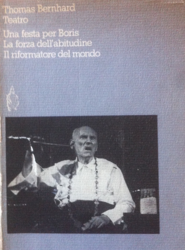 La forza dell’abitudine apre la strada al teatro di Bernhard in Italia. Esso viene rilanciato dal primo volume dei testi pubblicato nello stesso 1982 da Ubulibri, con gli storpi cinici o vittime di Una festa per Boris (1970), con La forza dell’abitudine (1974), con il vecchio bilioso odiatore dell’umanità di Il riformatore del mondo (1980). A rinforzare l’idea che l’autore sia guardato come un “caso”, segnaliamo il fatto che il volume non contiene un’introduzione che presenti lo scrittore e il ruolo del suo teatro all’interno di un’opera composita, sviluppatasi già con notevoli risultati tra la poesia e la narrativa, ma si chiude con una lunga intervista che cerca di mettere in risalto gli aspetti di misantropia e di nichilismo dell’uomo. Ubulibri pubblicherà la maggior parte dei restanti testi teatrali in altri quattro volumi: il secondo, del 1986, comprende La brigata dei cacciatori (1974), Minetti (1976) e Alla meta (1981); il terzo (1990) è costituito da L’apparenza inganna (1983), Ritter, Dene, Voss (1986) e Semplicemente complicato (1986); il quarto, nel 1999, torna a L’ignorante e il folle (1972), a Immanuel Kant (1978) e a Prima della pensione (1979); la pubblicazione si ferma con l’uscita, nel 2004, di Il presidente (1975), Il teatrante (1984) e Elisabetta II (1987), lasciando fuori Die Berühmten (Le celebrità, 1976), Über allen Gipfeln ist Ruh (Su tutte le vette è pace, 1982) e Heldenplatz  (Piazza degli eroi, 1988), edito da Garzanti nel 1992, testamento dell’autore austriaco (morto il 12 febbraio del 1989), il testo più “politico” o perlomeno quello che più esplicitamente legge le tendenze antisemitiche e neonaziste dei tempi, già però avvertite come una minaccia, in altri modi, in opere precedenti.