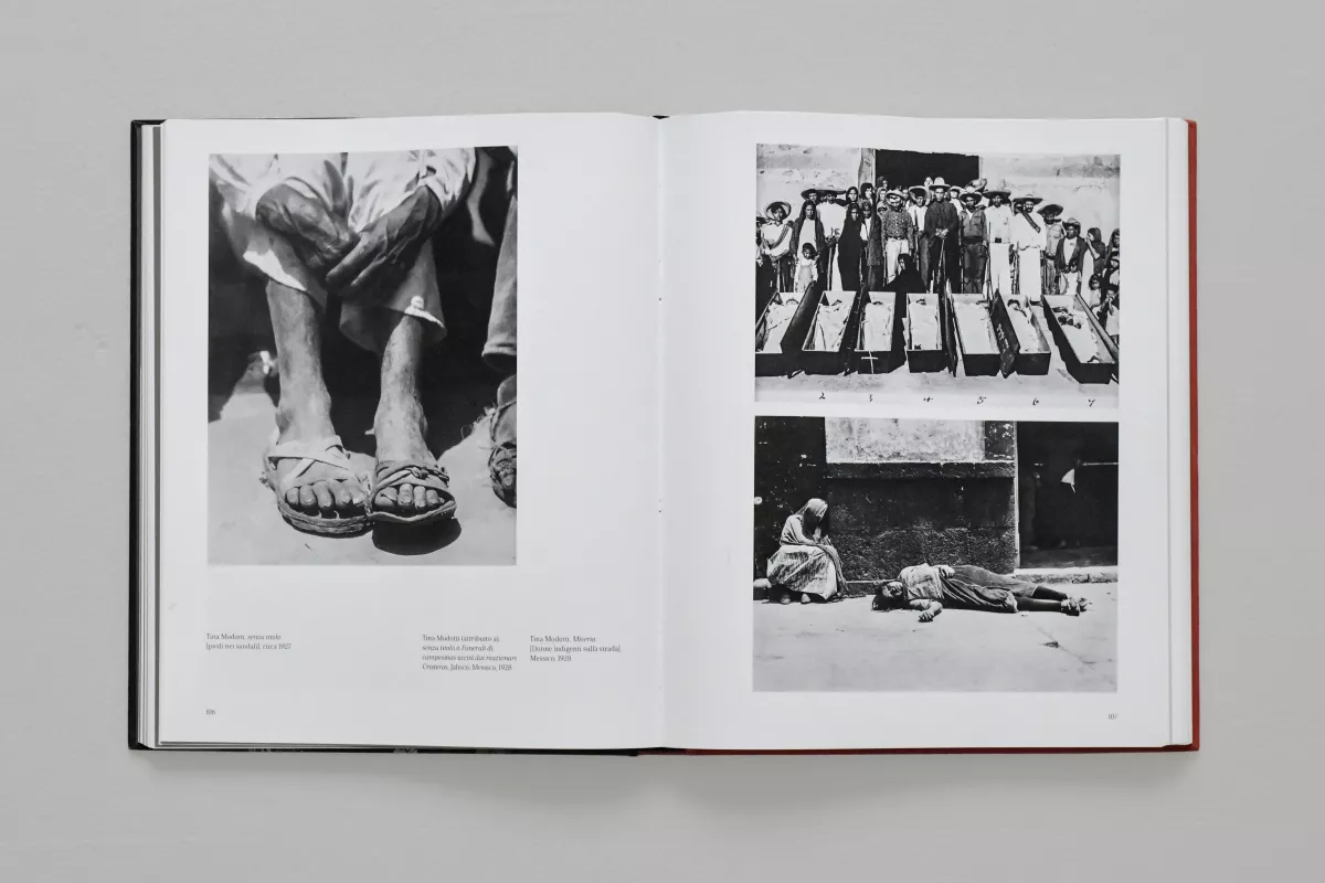 Al centro del percorso espositivo si trova una “mostra nella mostra”, con la ricostruzione nella forma più completa mai realizzata (41 scatti dei 57/60 originali) della personale del 1929 presso l’Università Nazionale del Messico. La mostra rappresentò il pieno riconoscimento della fotografa e delle sue idee, espresse nell’introduzione a mo’ di manifesto di poetica. L’unica fotografia possibile per Tina è quella che si pone come mezzo per registrare il presente. Antiestetica e oggettiva. Senza pretese. Perché ogni qual volta la fotografia ricorre a imitazioni artistiche, rivela “una specie di complesso di inferiorità” dando l’impressione che “l’autore quasi si vergogni di fotografare la realtà”.