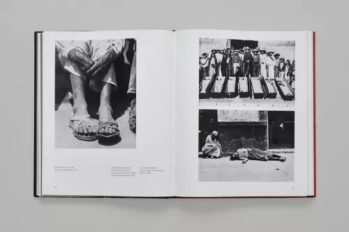 Mani segnate, piedi luridi, gente distesa sulla strada: per Tina il corpo è denuncia politica. Un grido, le sette bare allineate di campesinos uccisi dai reazionari. Dietro, le famiglie sono una barricata. Tengono la posa di un ritratto di gruppo, guardano in camera e accettano di sospendere il dolore per il tempo dello scatto, perché la foto testimonierà l’ingiustizia di cui sono stati vittime i loro familiari.