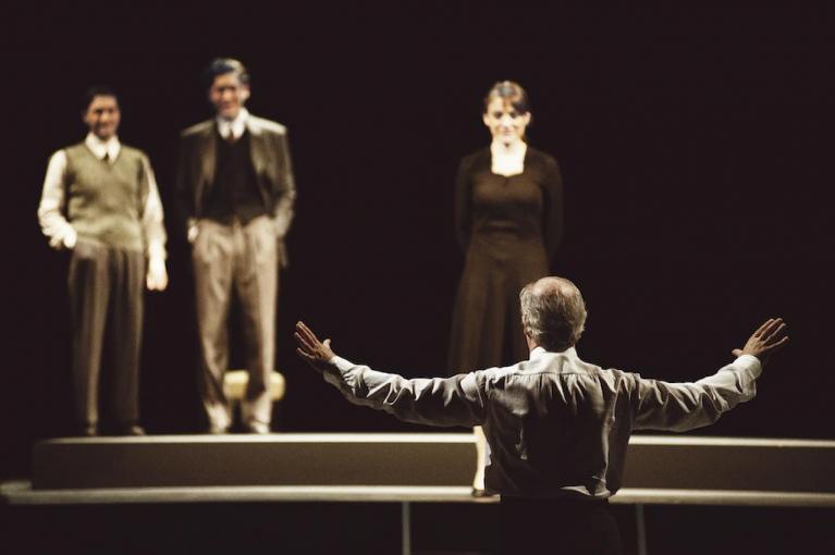 Sì, perché in questo recesso dell’approfondimento umano, apparentemente isolato dal mondo, a un certo punto arrivano le voci dei nazisti invasori, prima, dopo la sesta lezione, il discorso di un qualche gerarca con grida di folle plaudenti, poi, alla fine dell’opera, un’allocuzione scandita, violenta, allucinata dello stesso Hitler. A un certo punto date un colpo al cuore dello spettatore con l’evocazione di questa tempesta, che rivela quel luogo, il teatro, la scuola per attori, un’isola dove si cerca di preservare l’umanità dal naufragio.