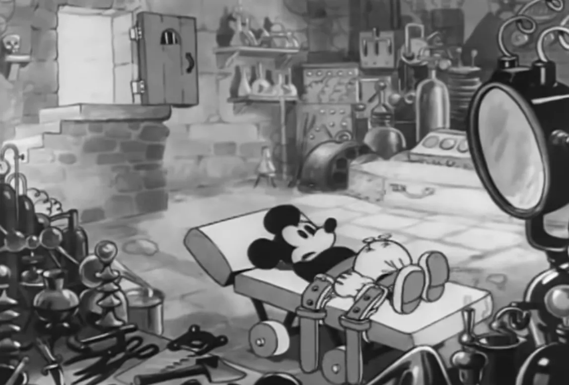 Pensiamo anche a The Mad Doctor, del 1933, il cinquantaduesimo corto della Disney nel quale il Dr XXX, uno scienziato matto, ruba Pluto, il cane di Mickey. Il progetto di montare la testa di Pluto sul corpo di una gallina (per vedere se le uova assumano una sembianza canina) è impedito da Topolino, che finisce a sua volta nella sala operatoria del medico impazzito. Benché tutto si dissolva alla fine (si trattava soltanto di un terribile incubo), con questa atmosfera cupa della sperimentazione eugenica il mondo del laboratorio entra prepotentemente nell’universo Disney.