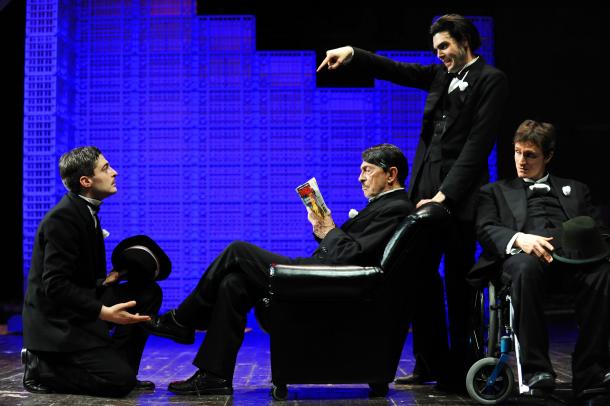 Molto si potrebbe dire di quanto questi allestimenti condividano, nonostante le enormi diversità che distinguono le compagnie e il loro lavoro: opere che parlano di modernità e di regimi autoritari, di guerre piccole e grandi, di concorrenza, sopraffazione e connivenza, si esprimono con una vertiginosa molteplicità di linguaggi (musica live, danza, videoproiezioni...), accarezzano vertici di dissacrante comicità e dimostrano un incondizionato gusto per la più vivace spettacolarità, con l’Arturo Ui che strizza l’occhio al kabarett e alla rivista e il lavoro degli Artefatti che si appropria di tutta l’estetica dei mass-media contemporanei, dai talk show a YouTube. Ma, fra prossimità più o meno forzate e differenze evidenti, un tratto particolare che segna entrambi gli allestimenti si trova nel rapporto fra il testo rappresentato e la contemporaneità. L’Arturo Ui tratta dell’avvento (appunto contrastabile) del nazismo, traslato nei trust della Chicago del ‘29; il secondo è un dramma didattico sulla celebre guerra per il dominio di Roma. I criminali americani zittiscono i testimoni dei processi e i guerrieri classici comprano l’arbitro con piogge di quattrini; il paragone fra le vicende dell’Ui e la politica attuale è inevitabile, così come il gioco delle parti fra Orazi e Curiazi non può non far pensare al caos fra i partiti che conosciamo bene. Avvicinare situazioni simili alla politica contemporanea sarebbe stato facilissimo, ma entrambi gli spettacoli vanno nella direzione opposta, scegliendo di non attualizzare in nulla il testo rappresentato; così entrambi esplodono in un rigore filologico da far venire la pelle d’oca, che provoca spontaneamente cortocircuiti con il presente.