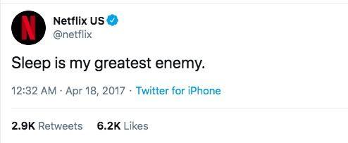 Netflix qualche anno fa dal suo profilo Twitter inviò un tweet ironico, che però racconta apertamente la sua natura profonda. Quel tweet recitava: “il sonno è il mio più grande nemico”. Non è un fake. È un tweet vero, cercatelo. Ed è vero: le azioni di Netflix crescono solo se aumenta il numero di ore che passiamo sulla piattaforma: gli abbonamenti non potranno crescere all’infinito, vista la concorrenza agguerrita (a proposito, Disney+ è appena uscita in Italia), e quindi dovranno crescere le ore. Ma l’attenzione è un bene finito, quindi le ore non possono crescere a dismisura, a meno che… non smettiamo di dormire.