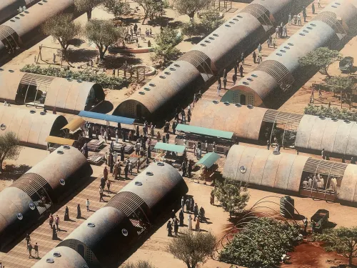 Nell'esposizione vengono presentati progetti di trasformazione di una baraccopoli in India, il piano regolatore della città ucraina di Charkiv, soluzioni alternative alle tendopoli per l'accoglienza dei rifugiati, abitazioni a basso costo e sistemi di energia pulita. Una attitudine che Lord Norman Foster ha appreso dal suo “maestro” Richard Buckminster Fuller, di cui ha riprodotto la Dimaxion Car e altri prototipi per la mostra che il Centre Pompidou gli dedicò nel 2023. Differentemente da Renzo Piano che ha avuto in Frei Otto, Cedric Price, Marco Zanuso e Franco Albini i suoi maestri, Foster si è sempre ispirato all'inventore geniale Fuller. Un esempio sono l'Odisha Liveable Habitat e le Essential Homes. Nel primo progetto siamo in India ed è nato dalla collaborazione con l'industriale dell'automotive Ratan Tata. Lì Foster ha attivato un processo partecipativo con il riconoscimento delle proprietà delle terre agli abitanti della baraccopoli e attraverso laboratori e interviste si è elaborato il piano regolatore che tenesse in considerazione i loro bisogni. In Essential Homes, iniziato nel 2022 e tuttora in corso, Foster progetta unità abitative in sostituzione delle tende per i rifugiati. Nato da un workshop, si è posto fin dall'inizio l'obiettivo di dimostrare come l'uso delle tende fosse inadeguato a causa dell'invivibilità dello spazio abitativo. Viene così pensato, grazie alla ricerca sui materiali, un disegno che si è ispirato alla curva naturale definita dalla forza di gravità su una fune ruotata di 180° che forma, così un arco catenario. La parte strutturale è stata realizzata con un telaio in legno ricoperto di teli impregnati di cemento a basso contenuto di carbonio che si induriscono e tengono la forma in ventiquattro ore; in questo si risparmia il 70% delle emissioni di carbonio. Queste unità si possono assemblare e possono formare un isolato con spazi pubblici e percorsi. D'altronde la sostenibilità per Foster è stata, fin dall'inizio della sua carriera professionale, un obiettivo centrale della sua ricerca architettonica. Ma la Triennale esplora, sempre nell'ambito della sperimentazione, le potenzialità dei batteri nella trasformazione da minaccia a risorsa, affrontata in We the Bacteria a cura di Beatriz Colomina e Mark Wigley. In questo caso si analizza l'impatto dei batteri sulla nostra salute dimostrando come patologie quali allergie, autismo, obesità, diabete sono conseguenze di “una progressiva riduzione della diversità batterica”.