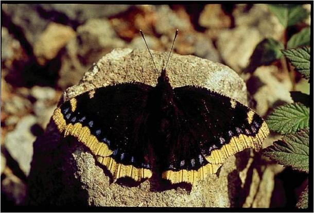 E venne il giorno della prima antiopa. Non che questa fosse una farfalla tropicale, ma ne aveva tutto l’aspetto. Non la conoscevo affatto, la Nymphalis antiopa, questa grande vanessa dalle ali vellutate colore dell’ebano e dai grandi margini bianco-giallastri con piccoli punti blu lì vicino, che ama volare anche in alto, veleggiando come un aliante, tranquilla e maestosa se non disturbata ma robusta e possente non appena, spaventata, si allontana sbattendo vigorosamente le ali. Una grande volatrice, una specie che a me parve tropicale.