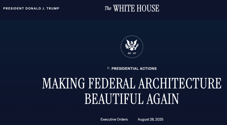 L’ordine esecutivo emesso da Trump pochi giorni fa, il 28 agosto, si posiziona all’interno di questa visione classicista dell’arte (e in particolare dell’architettura), ma lo fa con accenti e modi straordinari. Nell’intera storia occidentale non credo esista un documento paragonabile nel contenuto e nella forma: il potere politico decide quale deve essere il linguaggio artistico dei futuri edifici pubblici e dà ordini perché questa decisione venga applicata conseguentemente.