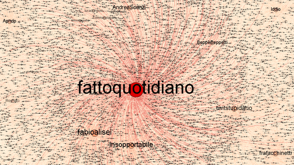 Durante Sanremo “Svetta su tutti il Fatto Quotidiano che riesce ad inanellare una serie di messaggi molto rilanciati dai suoi quasi 250.000 follower. [...] è l’ennesima dimostrazione di come Twitter sia uno strumento in grado di favorire la diffusione delle informazioni, spesso provenienti da un numero esiguo di personaggi (hub) con un considerevole numero di follower”. Vincenzo Cosenza
