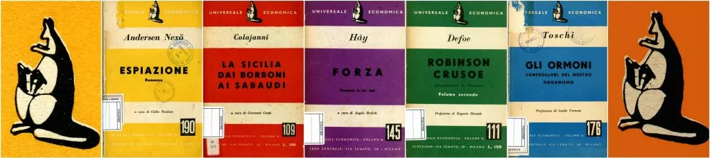 L’Universale economica Colip, che sin dal primo numero aveva in copertina il Canguro con il marsupio pieno di libri, nasce nel 1949 nella sede del quotidiano «Milano Sera». Il presidente è Corrado De Vita, anche direttore del giornale, molto presenti sono Emilio Sereni, Gian Carlo Pajetta ma soprattutto Ambrogio Donini, che sono voci e occhi del Pci e di Togliatti. La quarta dei volumetti presenta in questi termini la collana:
